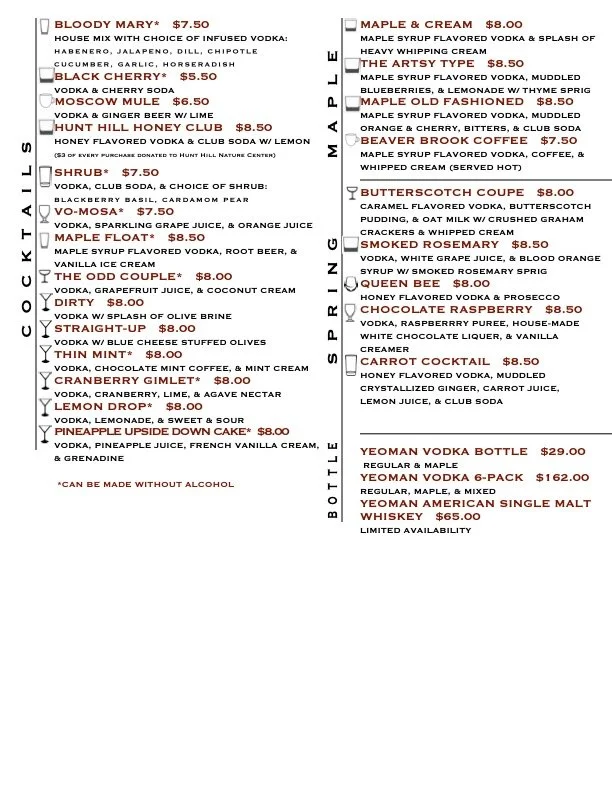 The Tasting Room at Perlick Distillery offers a curated selection of cocktails made with our American Yeoman Vodka including a seasonal menu that changes every 3 months. We also offer a selection of wine by the glass or bottle, and a limited selection of northern Wisconsin beers.